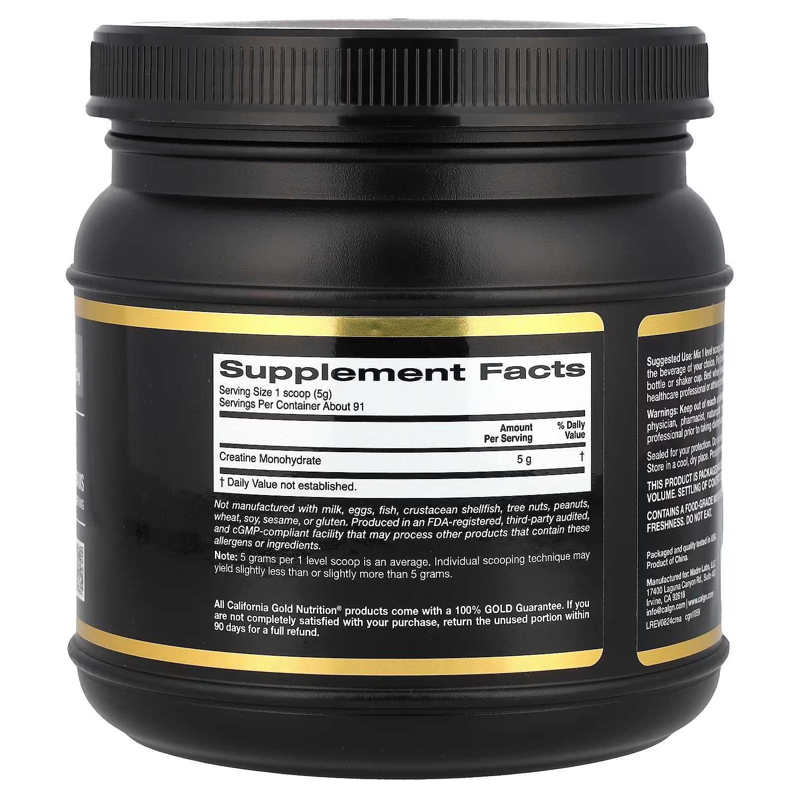 Não é fabricado com leite, ovos, peixe, crustáceos e mariscos, frutos secos, amendoim, trigo, soja, gergelim, ou glúten. Produzido em uma instalação registrada pela FDA, auditado por terceiros, e em conformidade com cGMP e que pode processar outros produtos que contêm esses alérgenos ou ingredientes.